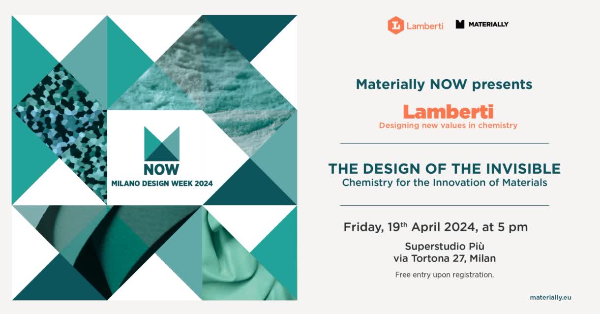 At Materially NOW during the Design Week 2024 we introduced our visions and practices through three different case histories. Our presentation focused on the pivotal role of Specialty Chemistry in innovating materials.