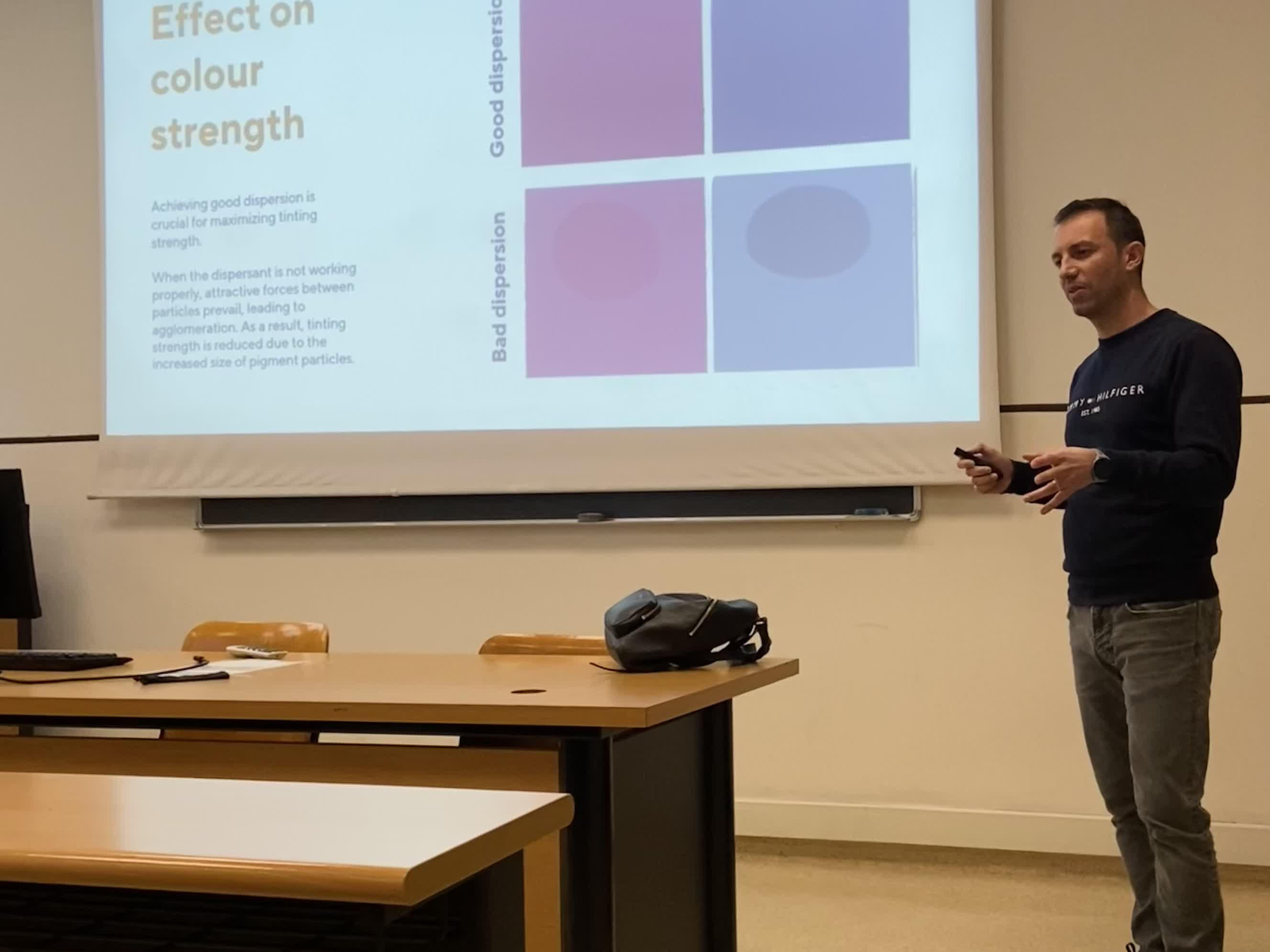 This experience allowed students to directly engage with key aspects of industrial chemistry, deepening their understanding of formulation science and the technological challenges behind the development of functional materials for coatings and related applications.
